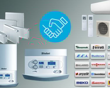 Demirdöküm, Baymak, Vaillant, E.C.A, Buderus, Bosch, Viessmann, Protherm, Ferroli, Ariston, Airfel, Alarko ve diğer tüm markalar.